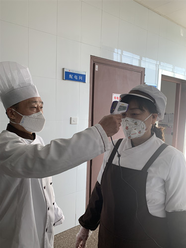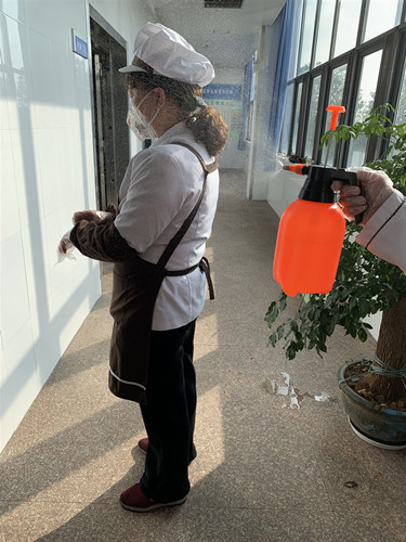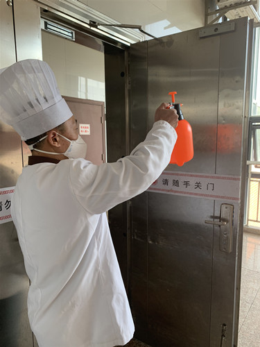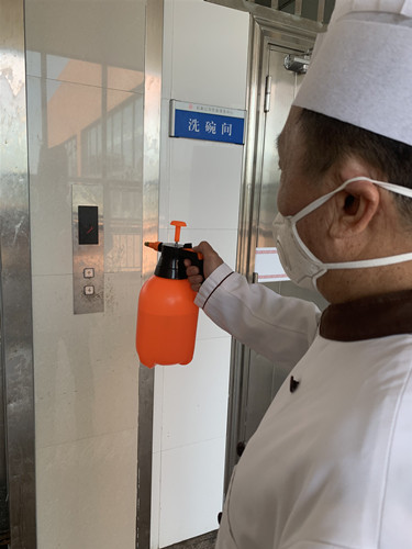 2月5日,群贤楼二楼食堂值班第一天,食堂疫情防控措施进一步升级、细化、强化。值班员工须佩戴口罩上岗,除每日晨检外,增加下午午检工作,每天2次体温测量,并做好测量记录台账;把好物资的采购验收关,杜绝采购和验收海鲜等存在安全隐患的原材料,确保物资供应充足,保证食品原料卫生安全;加强食堂大厅、内厨、电梯重点区域、部位消毒措施,对食堂公共部位如桌椅、台面、免费汤工作台、收银台等用浓度为75%的酒精一一擦拭消毒,并保持室内空气流通,创造卫生、整洁、健康的用餐环境。
