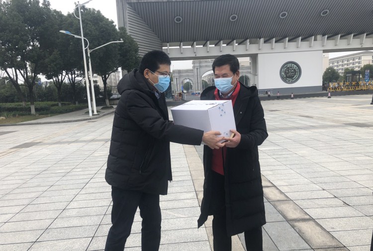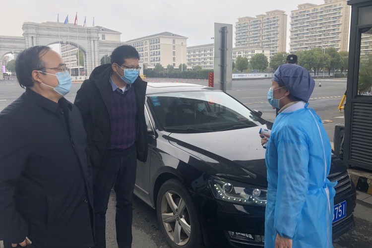 校领导一行实地察看学院校门卡口管控和校园公共区域消毒等落实情况,亲切慰问防控一线工作人员,向他们表示崇高的敬意和衷心感谢,并给学院送来了口罩等防控物资。