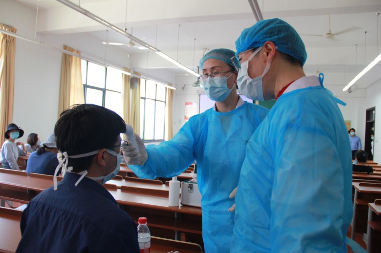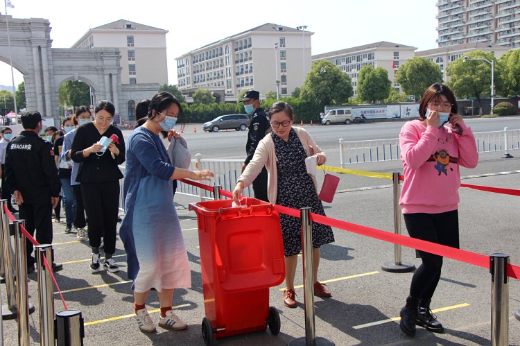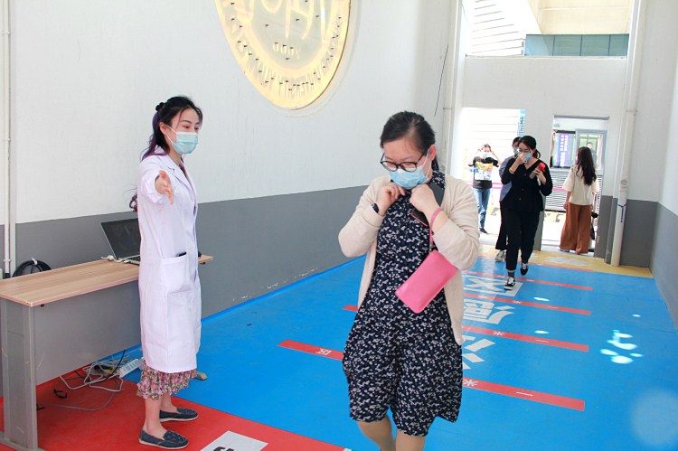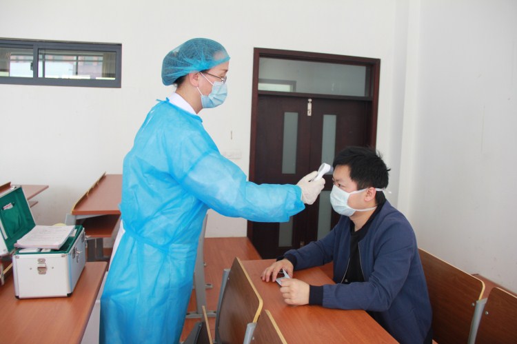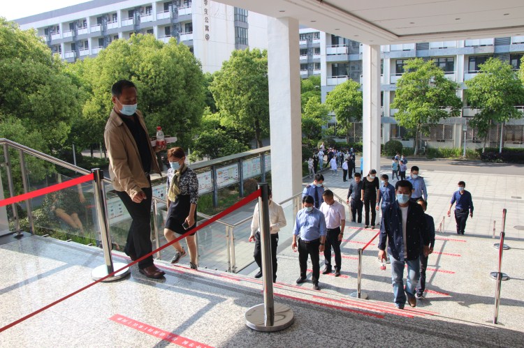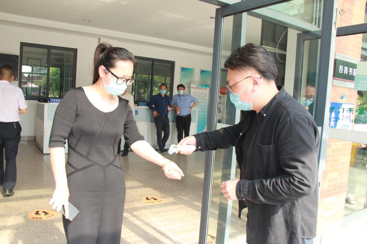 学院实行分期分批错峰开学,学生按学院通知时间返校,返校时分院辅导员、现场志愿者在西大门引导学生排队(间隔1米)进校。入校前统一测温,确定体温正常进入校园,体温异常者现场引导至校门口“临时观察点”,立即启动防疫程序,妥善处置。