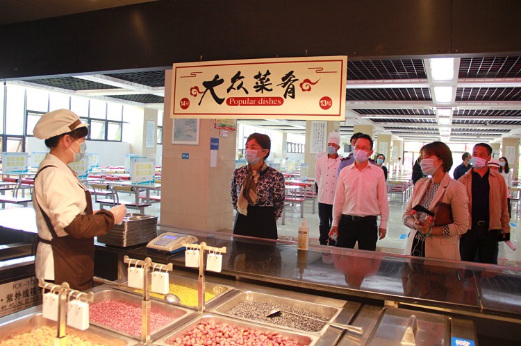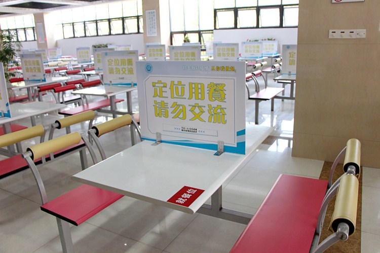 学生有序门口间隔1米排队,测温后进入食堂,有序打菜取餐。测温时发现体温异常学生。启动防疫程序,妥善处置。