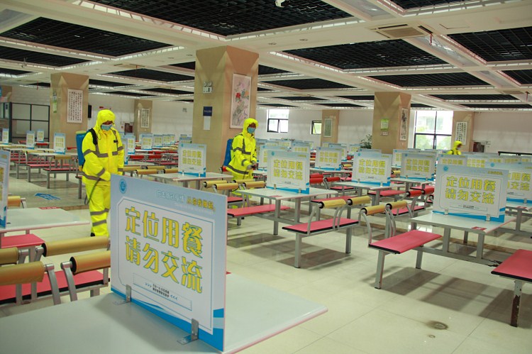 目前,学院开学返校各项准备工作全面部署到位。口罩、洗手液、消毒液、额温枪等防疫物资储备充足;所有教学及公共区域重点场所、寝室、洗衣房等后勤保障区域都进行了全面消杀;所有进入学校大门的人员、车辆均按照防疫工作要求和流程,通过体温检测和健康码核验才能进出;食堂就餐推出暖心点餐和送餐服务,餐饮服务推陈出新,排队区域设置一米地标线、指示牌等;做好线上教学和线下教学的有效衔接,确保教育教学质量;全体教职员工已全面到岗,严阵以待。与此同时,学院专门举行了疫情防控模拟开学应急演练,对学生返校报到,发热应急处置,上课、就餐等多个场景和环节进行了全方位、全流程、全仿真模拟演练,精准精细抓好疫情防控。