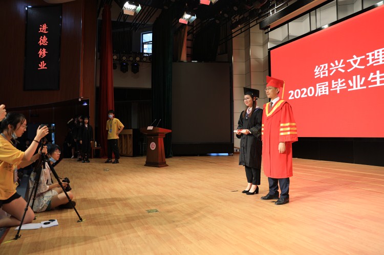 6月15日下午1点,学院2020届毕业生学士学位授予仪式在国际文化交流中心报告厅隆重举行。这是学院为2020届获得学士学位的毕业生们送上的一份特别礼物。仪式持续近一天半,长达10个小时内,院长沈红卫坚持自己站台,亲自为近1400余名毕业生逐一颁发学位证书、扶正流苏并合影留念。一位位毕业生头戴整齐的毕业帽,换上统一的学士服,整齐有序上台,与院长亲切地握手、合影,完成庄严的学位授予仪式。各分院和职能部门负责人,教师、辅导员代表等参加仪式。
