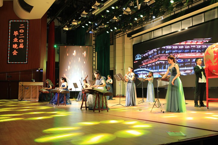 本场晚会分为“圆梦元培”和“扬帆启航”两个篇章。由何扬老师指导荣获的2019年浙江省大艺展金奖的舞蹈节目《鉴湖水悠悠》拉开了本场晚会的第一篇章,一群姑娘们衣袂飘飘,用舞蹈诉说春日耕织人因水而更美、水因人而益清的动人画面;院主持团同学带来的朗诵《“疫”路有你》,向年初时千千万“一寸丹心图报国”的抗疫医护人员、志愿群众致敬,唤起同学们燃燃的爱国心;器乐表演《霓裳风华》、《永远的长安城》用充满活力的演奏,慷慨悠扬的旋律,带领大家走进绍兴优秀传统的唐诗文化之路,描绘出希望的蓝图;来自各分院的老师们为毕业生带来《献给最可爱的“你们”》歌曲联唱,对陪伴四年的同学们道上一句感谢,献上最美的祝福,将晚会气氛推向高潮;在晚会第二篇章中,由曹敏、牛路老师指导荣获2019年绍兴市大合唱比赛一等奖团队的院合唱团为毕业生们献上合唱曲目《大鱼》、《we are one》;院主持团带来诗朗诵《廿载春秋 韵筑元培》,送上对学院建院二十周年的美好祝愿;院舞蹈团带来的舞蹈《信仰》刚强勇毅、轻盈飘逸,灵动地诠释了元培青年特殊魅力。晚会在院十佳歌手带来的校园青春歌曲联唱中圆满落下帷幕。