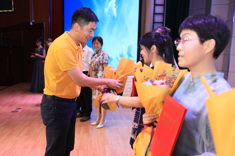 石生元为三位获奖教师献花