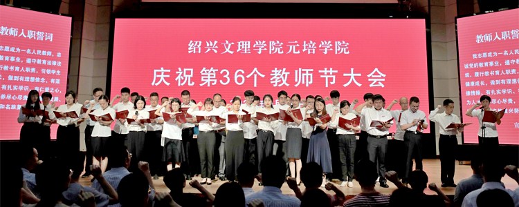 9月10日下午,学院庆祝第36个教师节大会在国际文化交流中心报告厅隆重召开。大会表彰了学院各类先进集体和个人,举行了新教师入职宣誓仪式。学院全体党政领导班子成员出席大会。全体教职工参加大会。院长沈红卫主持大会。