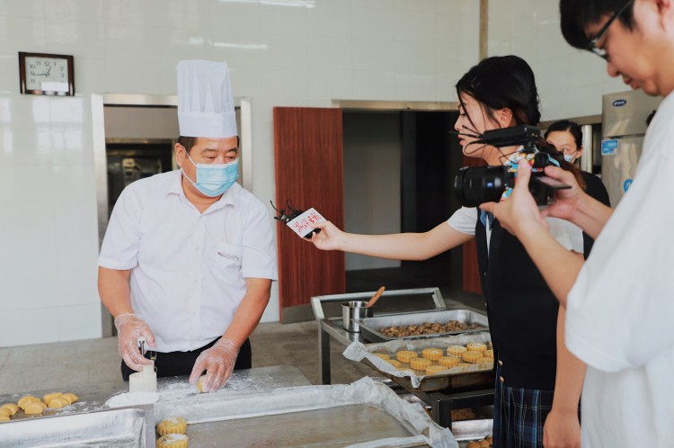 准备材料、学习制作方法、定制模具、保证口感……制作月饼这件事,早在一个月前,餐厅的厨师和阿姨们便开始周密的策划起来。一周前,待所有准备工作就绪,他们便纷纷加入到月饼制作的队伍当中。平时负责一日三餐的工作已经十分忙碌,为了让同学老师们都能吃上新鲜的月饼,师傅们主动牺牲自己的午休时间,赶制月饼。“我们的月饼都是纯手工制作,还是需要一定时间的。上次有个老师找到我,想定制100只月饼送给学生和亲朋好友。考虑到供应实在有限,只能答应给他的学生们赶制出60只月饼。”师傅一边忙着手里的活,一边自豪得说起。供不应求的月饼里,装的是他们对老师同学满满的心意。“我们在学校里工作,整天和孩子们打交道,我打心眼里疼爱他们。听到中秋很多同学都不能回家和家人团聚,希望我们的月饼能给他们带去一点温暖吧。”