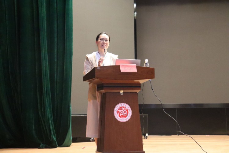 “为什么会是我们?刚好祖国需要,刚好我会。”从“曾经的我”和“毕业后的我”讲起,樊巧玲简要介绍了自己的成长经历和绍兴人民医院、重症医学科团队有关情况。围绕“克服压力,共抗疫情;扶危渡厄,医者担当;不忘初心,敢打必胜;时代青年,青春无悔”四个主题,樊巧玲深情讲述了白衣战士们主动请缨,带着院领导的嘱托,同事的不舍,家人的担心和期盼踏上征程的背后动人故事,全面回顾了援鄂期间面临的艰难处境、极大压力和病房工作情况及取得的阶段性成效等工作生活日常点滴。她以切身经历娓娓道来,为全体新生诠释了何为抗疫精神,何为责任担当,用朴实真挚的言语和写实的图片给分院新生上了生动鲜活的一课。她寄语全体新生,元培是医护梦想起航的地方,即便未来之路崎岖不平充满坎坷,都要坚守初心,勇敢面对,要坚信困难终将成为自己成长进步的阶梯,坚信未来的自己必将感谢曾经努力奋斗的自己。