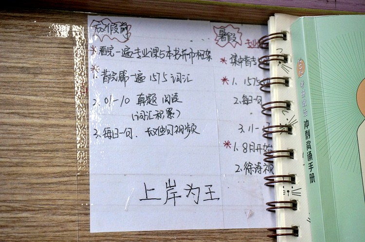 图书馆四楼的读书声总是连绵不断,401室内,夹在一摞摞书中间的周凡翻开被标记得花花绿绿的教材,戴上耳机听着“带背”音频,复习起政治。来自传播学的她同记者说道:“我背功不是很好,所以我一定要付出多倍的努力。”考研政治是难啃的硬骨头,许多知识点往往晦涩难懂,除了“带背”,周凡还尝试了许多复习技巧:“工人阶级、农民阶级和资产阶级是‘奶茶三兄弟’,全民族的抗战是‘布丁也要,椰果也可以’。”在她那儿,枯燥的知识点和有趣的词条结合在一起,背诵政治的同时也给单调的考研生活增添着乐趣,给自己加注着考研“正能量”。就像是马拉松里的“心碎坡”,不少人走到十一月这个节点,常顶不住压力而选择弃考。但是在周凡看来,最后的五十多天,依然是查缺补漏的时候,纵使压力再大,也不能前功尽弃。她说:“不到最后一刻,胜负都还未有定数,成功上岸的为什么不可以是自己?”