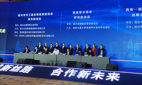 11月15日至17日,以“古城新丝路 合作新未来”为主题的“西安·绍兴周”活动在西安举办。在六个重大合作项目签约仪式上,学院与浙江五洲新春集团股份有限公司、西安航晨机电科技股份有限公司、航天科工股权投资基金管理(深圳)有限公司等单位签订发起共建绍兴市天工复杂装备智能制造研究院协议。绍兴市四套班子领导马卫光、盛阅春、谭志桂、魏伟、叶卫红、徐良平、丁如兴、王琴英、顾涛、邵全卯等见证签约。