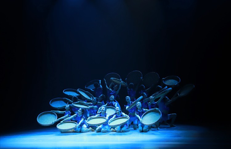 “这支舞是浸透了好几届人的心血。”胡诗佳说。2019年备赛大艺展的时候,胡诗佳大二,跟着大三大四的学姐们闷着头跳舞,一天十多个小时,卡着宵禁时间回宿舍是常态。“每天都举着竹编筛子,四个八拍练上一个月,一门心思在这个舞上,不是记动作,要记位置、记角度,脑子记住,肌肉也要记住。”上半年就开始的训练固然艰辛,但紧急关头的意外才是对每一个成员的严峻挑战。比赛前的两个月,主要舞蹈位置上的老成员退出;新加入两名的成员来自大一,没有演出经验,舞蹈动作要从头学起,默契也要从零磨合;花费数月抠过的动作不得不重新做出调整……连轴转排练,每位舞团成员的身上都扛着一座大山。“每一次排练,同学们看起来都有说有笑的,但是我能够感受到他们的紧张和疲惫。”舞蹈团的指导老师何扬告诉记者。纵然自顾不暇,生理与心理上都达到了忍耐的极限,舞蹈团的成员们还是迅速接纳了新成员,连夜带着她们学舞蹈动作的同时,还不忘时常给予她们鼓励与肯定。大艺展决赛前一周,舞蹈团的女孩们更是全力备赛,此时的两位新成员已然融入了舞团,一起抠了七八遍动作之后,出脚抬手举竹编,24个女孩,舞成了一道鉴湖的波浪。