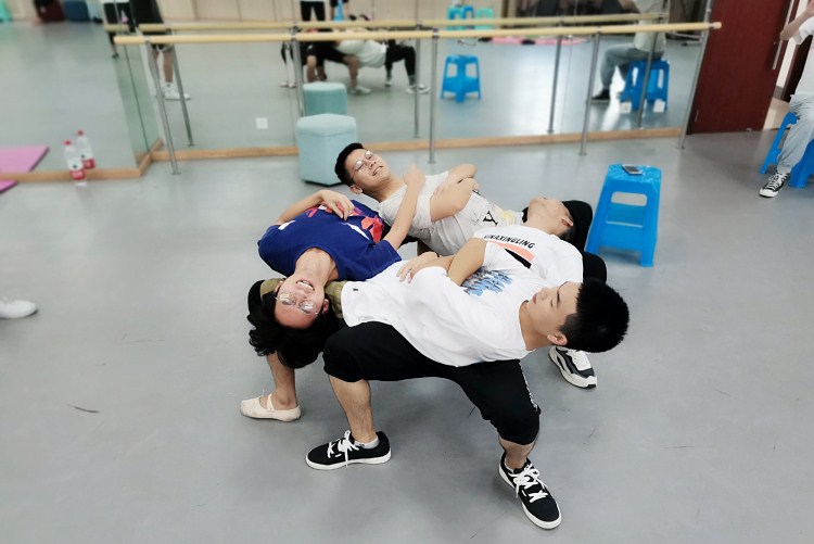 “今年新招了40个新成员,身后又多了一批人,我也比平时多了一份责任。”胡诗佳说。除去日常排练,作为舞蹈团团长,她的日常工作也包括了和各个晚会负责人的接洽,节目敲定和编舞。据了解,2020年的上半学期,舞蹈团预计要参加学院的四五台晚会。“加入舞蹈团以后我变了很多,以前没有这么敢交流,现在更乐于去跟人沟通,工作也做得更仔细。要让学弟学妹们安心跳舞。”迎新活动上学长们的一支《红色英雄》,让建筑工程分院的陈祖航同学决心加入院舞蹈团。他没想到的是,加入舞蹈团后就直接和“偶像”成了队友,一起练习基本功、一起排舞。腼腆的他开始还有些惶恐,但学长学姐亲切的态度和舞蹈团融洽的氛围很快让他安定下来,让他发觉“其实也没那么难”。除了周四必修的集训课,陈祖航还报名了周二的民族舞和周三的街舞课,学的舞种多,要记得内容自然也不少。除去课上的三个小时,他总是尽可能抽出时间来回顾动作要点,没事在宿舍的时候就自顾自跳起来,三个月下来,室友都见怪不怪了。“一想到老师下周要教新的舞蹈了,这周咬咬牙也要把这支舞学会,不然就是无用功。”陈祖航说,“我喜欢跳舞,也希望可以有一天上台,跳《红色英雄》这样的舞蹈。”