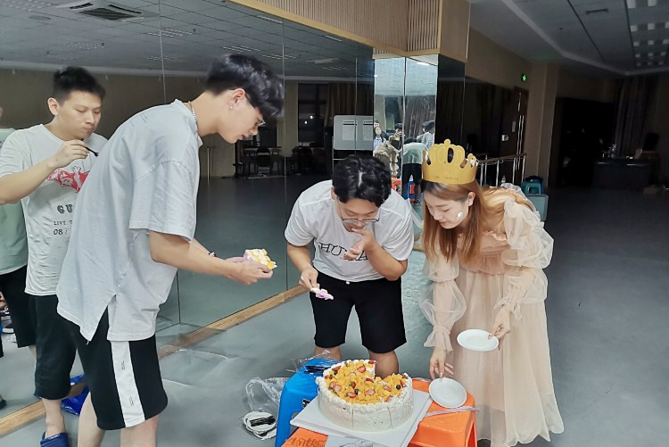 11月18日晚上十点,院舞蹈团团长胡诗佳在朋友圈贴出了团友孔刘娟的生日会照片。这是一场在排练厅举办的生日会,舞蹈团团员们像往常一样席地而坐,围成一圈,“寿星”还穿着舞鞋,捧着蛋糕对着镜头笑着。这天,他们刚刚结束寝室文化节的排练。几天后,他们将再次登上舞台。