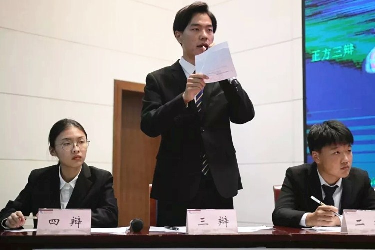 院辩论队队长齐林(图中)与队友们