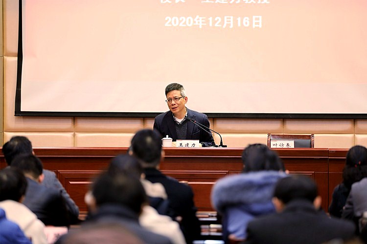 按照学校党委统一部署安排,12月16日下午,学校校长王建力在党办、校办主任孙仕龙陪同下,来院宣讲党的十九届五中全会和省委十四届八次全会精神。学院党政班子成员、全体主管及以上干部、党支部书记、教师代表参加宣讲报告会。报告会由学院党委书记叶访春主持。