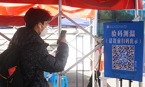 迎着朝阳,学生们陆续抵达校门口。查验“绿码”、核对身份信息、检测体温,完成三项规定动作后,来自浙江台州的土木1903班李昱璇同学完成了返校报到手续。她同记者介绍道:“返校的过程一路顺畅,各项信息都能在学院企业微信平台上查阅,非常便捷。”在学院西大门,返校的学生佩戴口罩、有序排队、保持着安全间隔距离,依次扫码、测温入校,秩序井然。