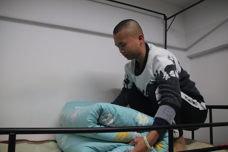 “同住一个寝室,一个室友入伍当了兵,空出了床位,又来了一个当兵退役的新室友,感觉我们寝室像一个迷你军营一样。看到退役回来的室友,曾经的梦想彻底被点燃,甚至更加热烈,徐俊杨决定作出改变。在室友沈俊濠的鼓励下,徐俊扬重拾了自己参军入伍的梦想,踏上了去健身房增肌的自律之路。无论白天黑夜,在健身房的一堆器械中,总能看到他的身影。每当坚持不下去的时候,想起那身军装,他就握紧拳头暗暗鼓励自己。