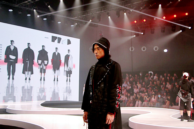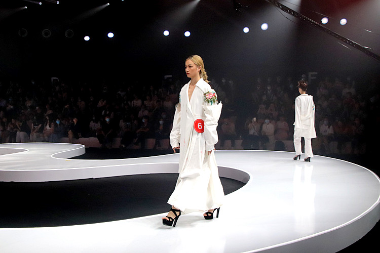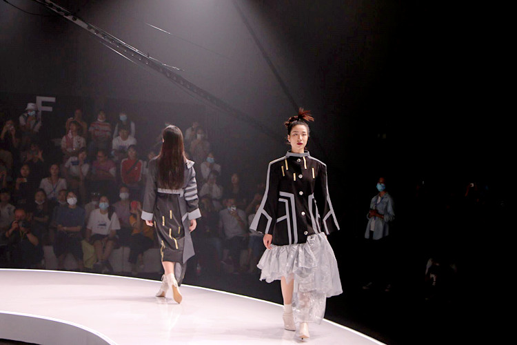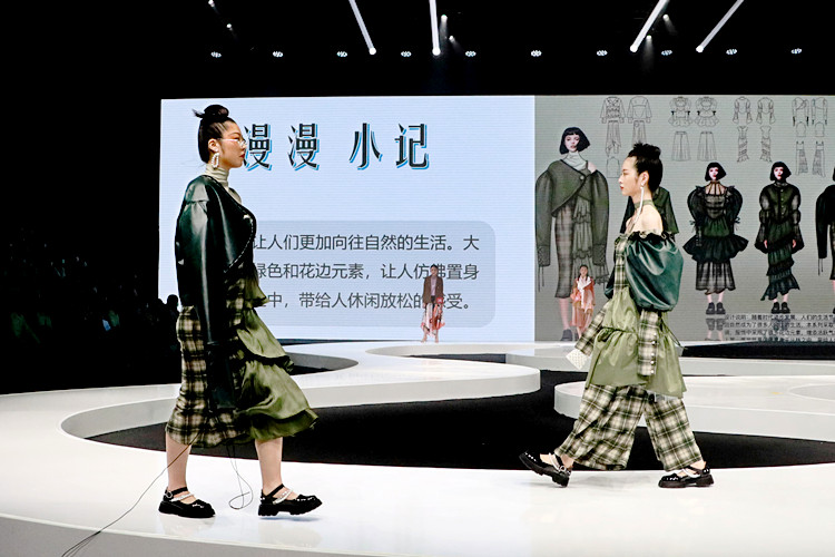 舞台上,万众期待的“大秀”正式登场,优秀参赛设计师和青年模特们凭借独特的原创力,诠释时尚新风尚,彰显新时代青年对时尚潮流的深刻理解力。灯光下,多种元素碰撞、色彩融合,不同色系的服饰、效果各异的材质和新颖的剪裁方式,形成造型活泼、青春洋溢的时尚之风;复古优雅的花纹装饰简约的纯白,搭配层层交叠的裙摆,给人以大气端庄之感,各具特色、夺人眼球的作品,赢得了在场观众阵阵掌声。