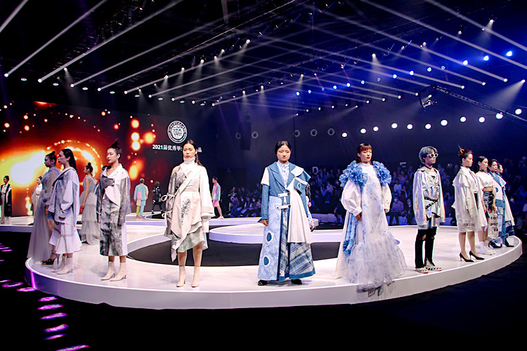 大赛奖项揭晓前,来自学院2021届服装设计与工程专业、服装与服饰设计专业学子设计的40套毕业设计作品依次进行展示。在大赛颁奖仪式上,68名同学分获服饰品设计类、服装造型创意设计类特等奖和一二三等奖,其中太阳马云同学的作品《郁见新生》荣获服装造型创意设计类特等奖,黄昕娴同学的作品《Monster》荣获服饰品设计类一等奖,张玎玲同学的作品《脉冲》、胡珊珊同学的作品《源创》、叶昶阳同学的作品《漫漫小记》荣获服装造型创意设计类一等奖。