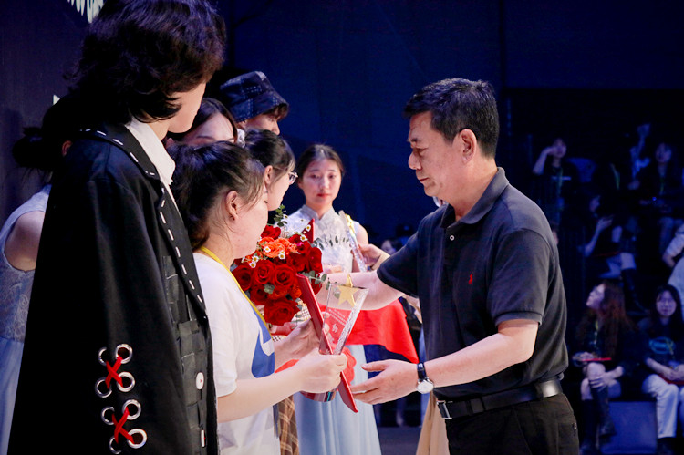学院党委书记叶访春、绍兴市教育局高教处处长赵佳维为服装造型创意设计类特等奖获得者颁奖