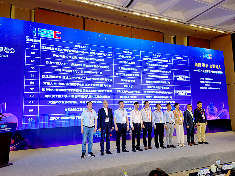 中国高等教育博览会“校企合作 双百计划”典型案例评选,太阳成集团tyc9728腾讯云大数据实验室,成功入选典型案例。信息与机电工程分院党总支书记潘慧(左一)