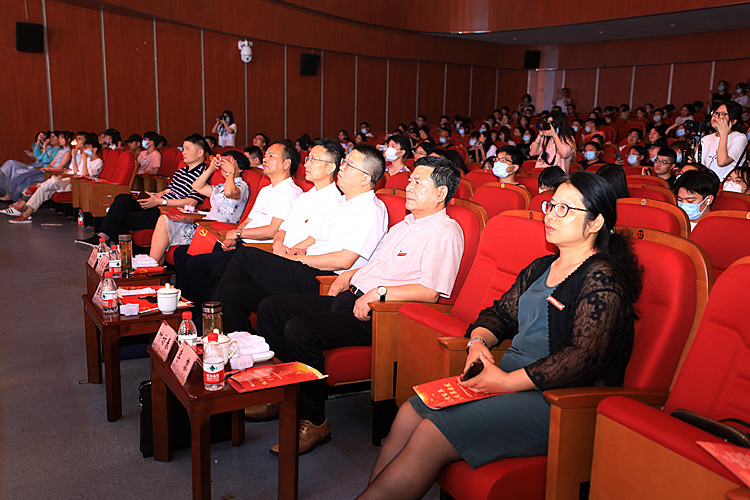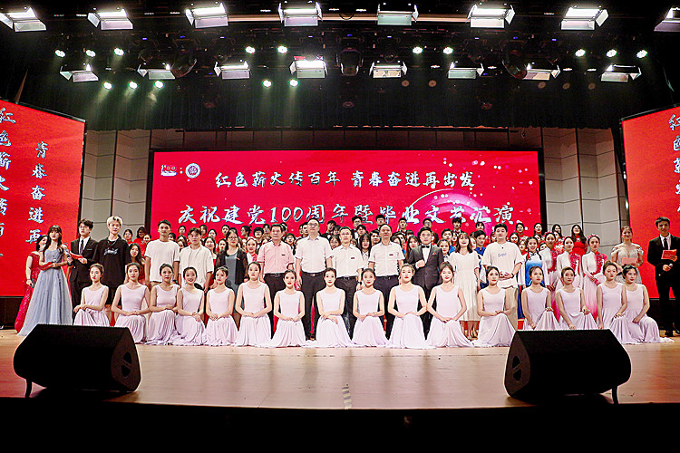 征途逐风雨,青春奏长歌,正值六月花开季。6月15日晚上,以“红色薪火传百年,青春奋进再出发”为主题的学院庆祝建党100周年暨2021届毕业文艺汇演在国际文化交流中心报告厅举行。122cc太阳集成游戏副校长陈均土、学院领导叶访春、沈红卫、李黎、石旭明出席晚会,各分院党总支书记、相关职能部门负责人和500多名毕业生们一同参加晚会。