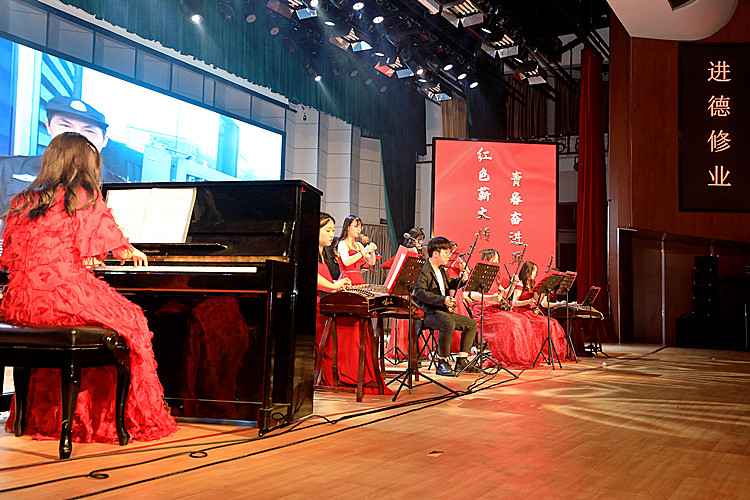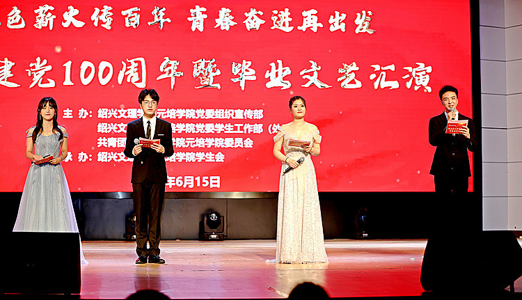 本场晚会分为“薪火传百年”“青春心向党”和“奋进再出发”三个篇章。开场节目舞蹈《红》的演员们用刚强勇毅的舞步描绘出中国人民追求解放的发展历史与中华民族百年来波澜壮阔的奋斗历程;建筑工程分院带来的情景剧《革命薪火,代代相传》讲述了无产阶级革命家左权将军战死前写给妻子的家书,呈现出浓浓的家国情怀,让全场师生深深感动;院合唱团带来的歌曲《我爱你中国》慷慨激昂,台上台下,师生们深情歌咏,置身于一片“红色海洋”。晚会的第二篇章中,器乐合奏《我的祖国》、《启程》曲声悠扬,扣人心弦,勾勒出新时代的光辉图景;话剧《为中华之崛起而读书》以极富张力的表演展现了青年周恩来的博大胸襟和远大志向,激励着元培学子牢记初心使命,争做时代新人;合唱《跟着共产党走》在建党百年之际,唱出了对党的礼赞。晚会第三篇章声行并茂,献礼青春。院主持团带来的诗朗诵《寄情于“你”,逐梦未来》带领着毕业生观众回眸四年大学生活,展望美好未来,送上了对毕业的深情祝愿,引起在座同学的强烈共鸣;舞蹈《不想说再见》、歌曲快闪《再见》《少年》用轻快、活泼的旋律调动起全场热情,展现了元培人的青春面貌。在学院教师牛路、院合唱团、院舞蹈团联袂呈现的歌舞表演《再一次出发》中,晚会圆满落幕。晚会通过音乐舞蹈剧、舞台剧、朗诵等艺术形式将思政教育与美育相融合,现场精彩不断、高潮迭起,极大地彰显了元培学子昂扬向上的青春风貌,师生一同在热烈祥和的氛围中感受晚会精神内涵、弘扬时代主旋律,为党的百年华诞送上美好祝愿。