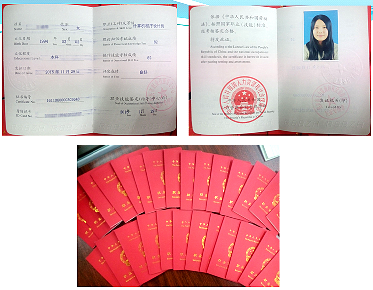 学生获得的国家职业技能资格证书