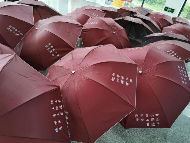 以“书画”传爱颂党恩。“哇,这心理展很有意思!”“看着这些创意作品,很有共鸣,好感动。”近期,学院心理素质教育中心举办庆祝建党100周年之总想对你表白心理画展。广大青年学子以粘贴画的艺术表达形式深情告白祖国,并通过深入学习了解我党百年发展,以书法、剪纸、摄影等艺术形式表达个人情感。经济管理分院青年学子以笔写爱、以伞传情,把党史金句印刷在志愿雨伞上,为师生提供出行便利的同时,更营造了“党史伞上书,墨香飘校园”的浓厚氛围。