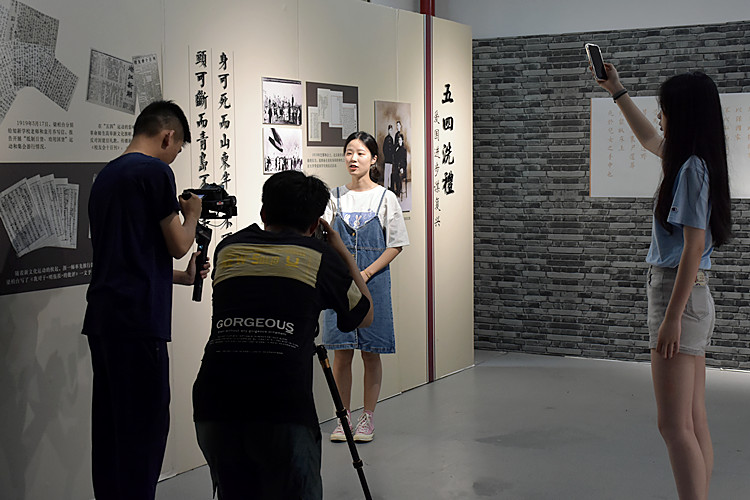 以青春之“声”告白。七一前夕,学院庆祝中国共产党成立100周年“红歌”快闪点燃校园。来自学院教师代表和学院合唱团、舞蹈员、主持团的青年学子代表,用歌声深情演绎《我和我的祖国》,唱出了对中国共产党百年华诞的诚挚祝福,掀起了“唱支山歌给党听”的活动热潮。学院合唱团团长服装专业1802薛捷之说:“大家主动放弃休息和备考时间参加活动,就是想以自己的实际行动来向我们伟大的党献礼。通过活动,大家更加坚定了听党话跟党走的信心和决心!”在庆祝建党百年红色家书经典诵读的舞台上,青年学子们纷纷以情景剧的方式,声情并茂地诵读革命先烈的家书,再现革命烈士对新中国的期盼,从红色家书中获取信仰的力量。