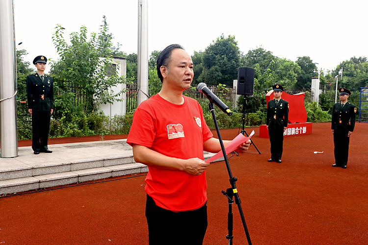 学院党委书记叶访春宣布升国旗仪式正式开始