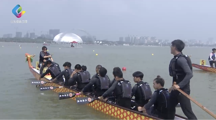 山东教育卫视赛事实况转播。图为学院龙舟队