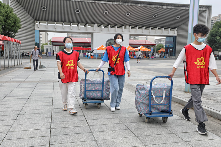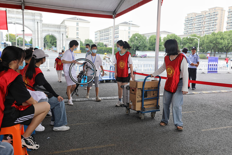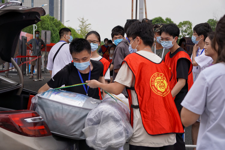 当天早上,学院有关部分负责人、安保、医务工作者、学生志愿者等就已守候在学院西大门。“来,我来帮你拿行李”,“同学,行李交给我吧!”热情的“红马甲”有序上前,从新生和家长手中接过行李,直接运送至校内行李放置集中点。服装与服饰设计专业的李世琦一家起了个大早,从杭州出发来到绍兴。望着儿子进校的背影,李世琦的父母满怀不舍:“进入大学是孩子成长的一个新节点,我们希望他在大学的生活里学会沉稳做事,踏实做人。”