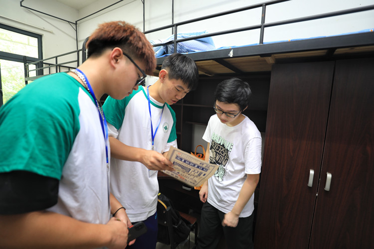 “同学,请先在这里签名确认”,“寝室的水电使用说明都在这里,可以阅读一下。”寝室楼下,宿管阿姨亲切地为新生解疑释惑。大家一起清扫地面、擦拭桌板,再将自己的各类物品整齐归置,与到来的室友热情地打上一声招呼,互换联系方式,照上第一张合影,寝室里洋溢着融融情谊。
