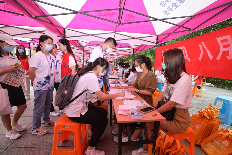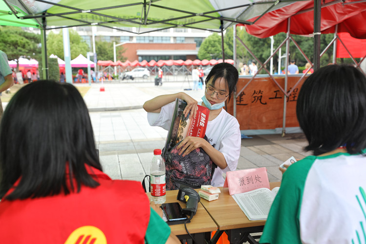 校园内,到处洋溢着生机盎然的景象,繁忙的迎新工作人员,穿梭在校园内额志愿者、温馨醒目的迎新标识、五颜六色的彩旗、励志的宣传标语、别具特色的专业展示……处处展现着欢迎新生们到来的喜庆氛围。“同学,请往这边走。”在各分院迎新点,新生在班主任、班助的引导下,陆续完成签名确认、领取寝室钥匙和学生手册等入学报到流程。