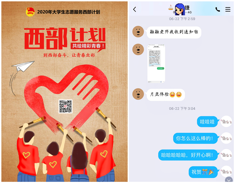 停靠的港口。“融融姐,我可以去新疆啦!”小捷是一个热心公益的甘肃姑娘,也是公认的优秀学生干部、中共党员。考研失利对她打击很大,在收拾好心情后,看到了2020年大学生志愿服务西部计划招募通知,便特意赶来向冯融融咨询。“综合考虑,我觉得这个项目非常适合你,希望你能够抓住机遇,到祖国需要的地方去。”报名、初试选拔,一切都很顺利,然而信心满满的等待最终还是落选了。收到消息后,冯融融赶紧给小捷打了个电话,“老师,没事的,我会二战考研,只是让你失望了。”小捷的懂事坚强让冯融融感到心疼。