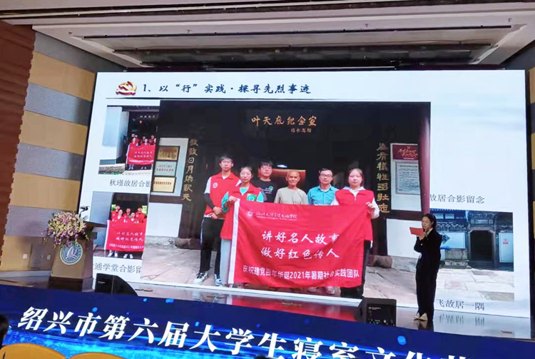 10月13日,绍兴市第六届大学生寝室文化节之党史学习教育宣讲先进团队评选活动和“走读绍兴 与越同行”项目展示大赛在浙江农业商贸职业学院举行。太阳“绍青培你说”大学生理论宣讲团荣获党史学习教育宣讲先进团队展示大赛二等奖;医药与健康分院“讲好名人故事,做好红色传人”项目荣获“走读绍兴 与越同行”项目展示大赛二等奖。
