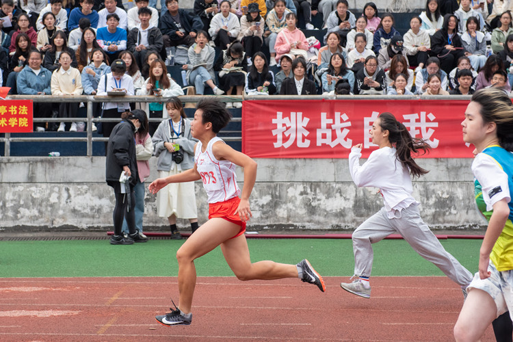 在透着秋意的南山田径场,伴着第一声发令枪响,起点处一道身影飞速跃起、跨过,径赛第一个项目——女子100米栏带来精彩竞技瞬间。赵凯玥遥遥领先,以锐不可当之势第一个冲过终点,拿到17.86秒的好成绩,比上星期刚结束的院运动会18.20秒的成绩又有了不小的突破。“接下来我会继续备战省运会,项目和校运会不同,我参加的是七项全能。”赵凯玥兴奋地说,“我相信老师,也相信自己,希望能通过训练进一步提升自己的成绩。”