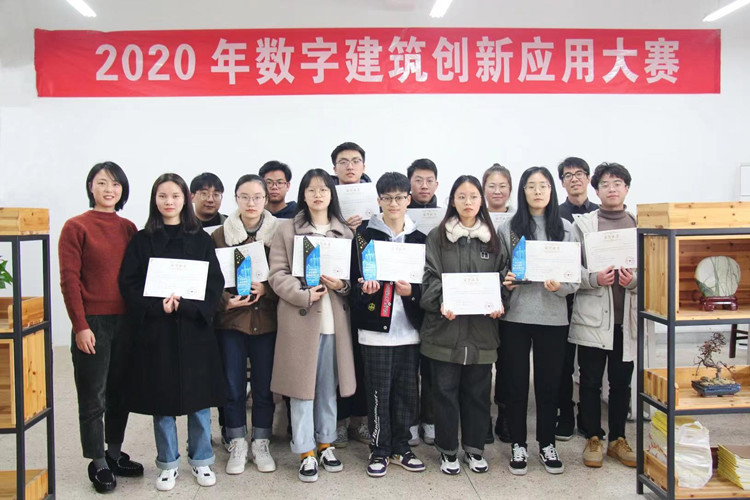 2020年数字建筑创新应用大赛指导老师王丽佳(左一)与参赛学生合影