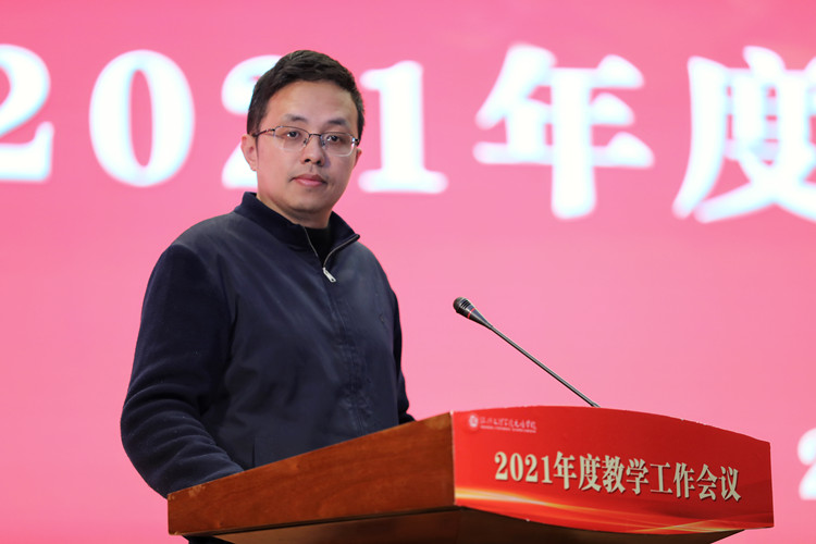会上,学院党委副书记石旭明宣读系列颁奖文件。学院党委书记叶访春为浙江省首届教师教学创新大赛获得者劳越明和李睿两位老师颁奖;学院院长为2020—2021学年外聘教师教学优秀奖获奖教师代表张鑫杰、王刚、张世涛颁奖;学院副院长沈玮为2020-2021学年认定为“互联网+教学”A级课程的杜轶君、王丽佳、王鉴莺三位老师颁奖;学院纪委书记俞国芬、副院长周思红共同为2020-2021学年认定为“互联网+教学”B级课程的崔洁等9位老师颁奖。经济管理分院教师孙吉、信息与机电工程分院教师俞淑燕、纺织服装与艺术设计分院教师余芳从不同角度出发,分别对各自专业人才培养调研工作和方案修订的思路进行了交流。