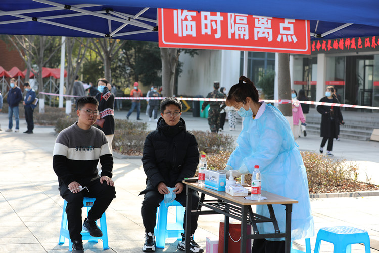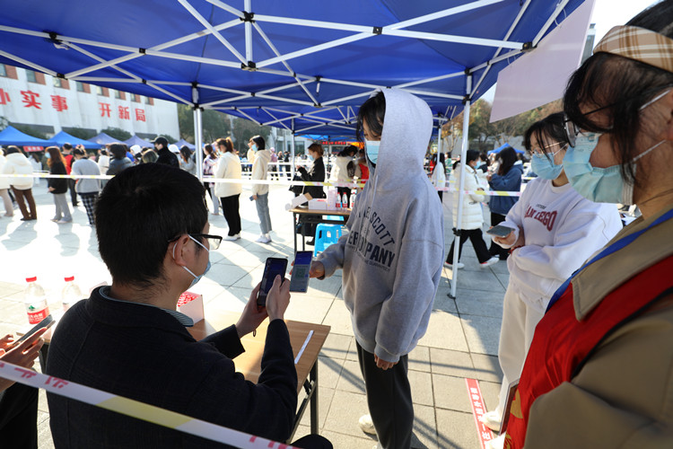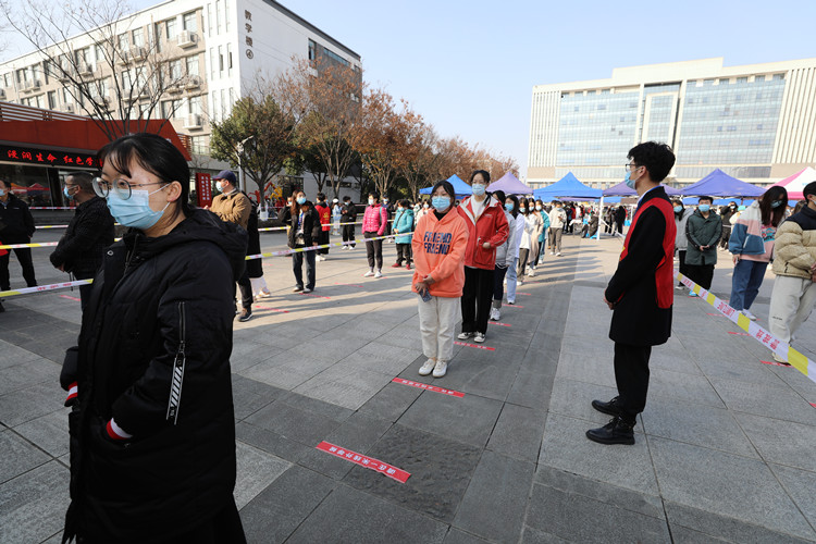 测量体温、出示健康码、提供二代身份证或扫码登记信息、排队等候采样、采样进行中……为加强疫情精准防控,筑牢校园疫情防线,根据上级部门工作要求,12月13日下午,学院在元培广场集中开展全体师生员工及留外楼教师家属核酸检测工作。现场设置16条采样通道,等候区、测温区、采样区、临时隔离区分布合理。检测快速高效,现场秩序井然。