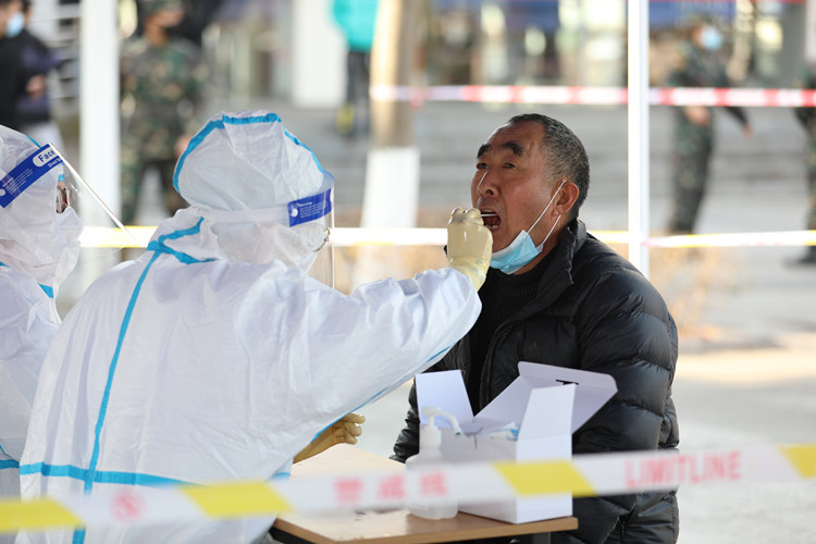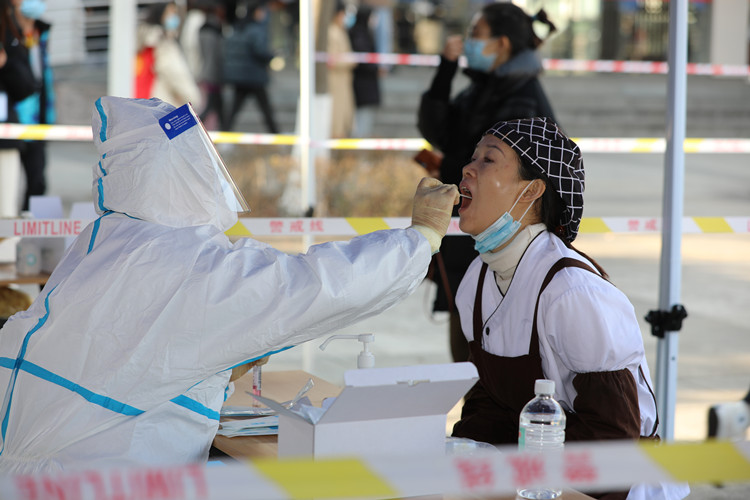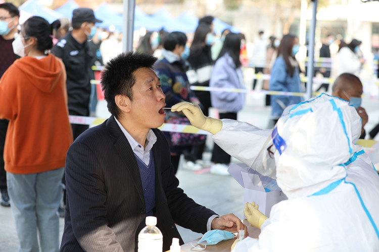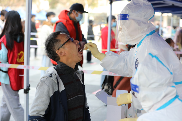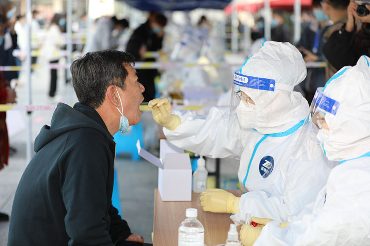 “仰头,嘴巴张大,‘啊’——,可以戴上口罩了。”在核酸采样点,医护人员“全副武装”,嘴上一遍又一遍地重复着注意事项,手上动作却从未停下。洗手、消毒、拆棉签,迅速为受检者完成核酸采样,整个过程不超过半分钟,争分夺秒地完成检测任务。