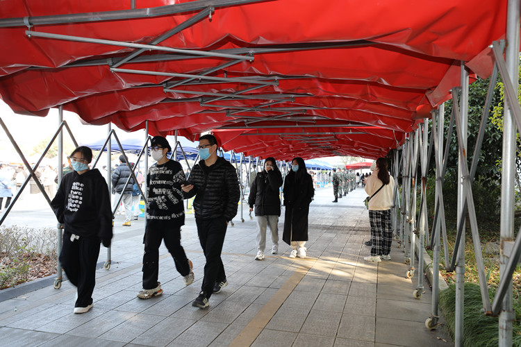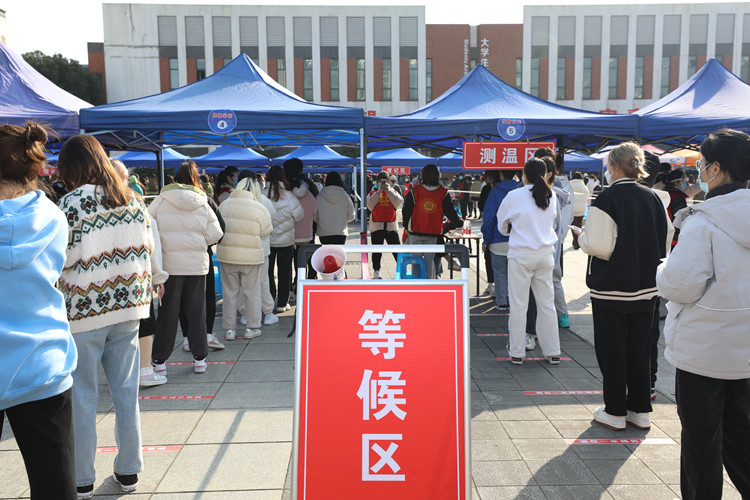 “疫情发生得很突然,但学校对我们很关心,准备也很充分,让我觉得很安心。”护理学2003董洁婷说道,同时她也“喊话”在上虞的父母,让他们不要担心。“我是第一次做核酸检测,本来有些紧张,但是现场的志愿者和医护人员都很细心,整个过程非常顺利。中语2101班的索子钰说。