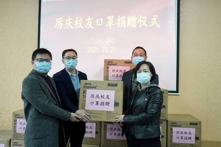俞国芬代表学院接收捐赠。她表示,此次捐赠体现了校友回馈母校的责任和担当,感谢厉庆校友对学院防疫工作的大力支持。学院将根据厉庆校友的捐赠意愿,将这批口罩发放到学院家庭经济困难生手中。希望广大校友能与学院保持密切联系,共同发展,构建美好愿景,助力学院发展。
