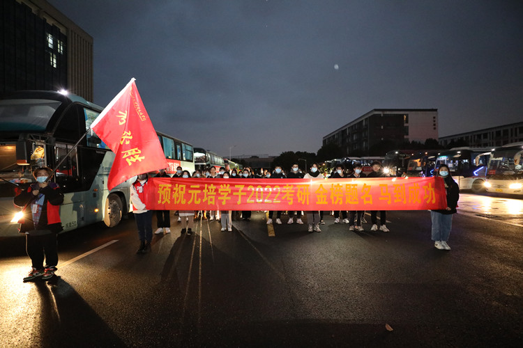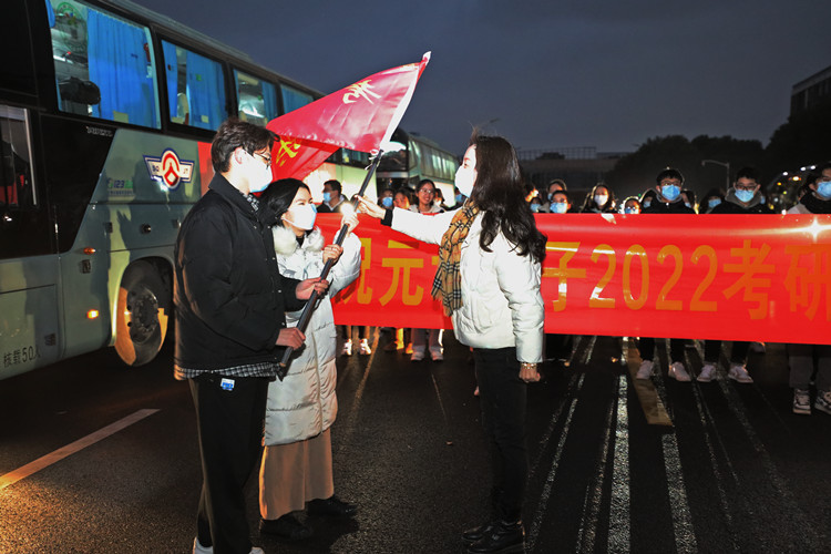 12月25日早上天蒙蒙亮,元培广场举行了一场简单却不失隆重的考研出征仪式。校党委委员、纪委书记柯羽,党委委员、党委宣传部部长梁瑜和学院党委书记叶访春、院长沈红卫、党委副书记石旭明等一行冒着严寒为700余名参加2022考研的同学温暖送行。
