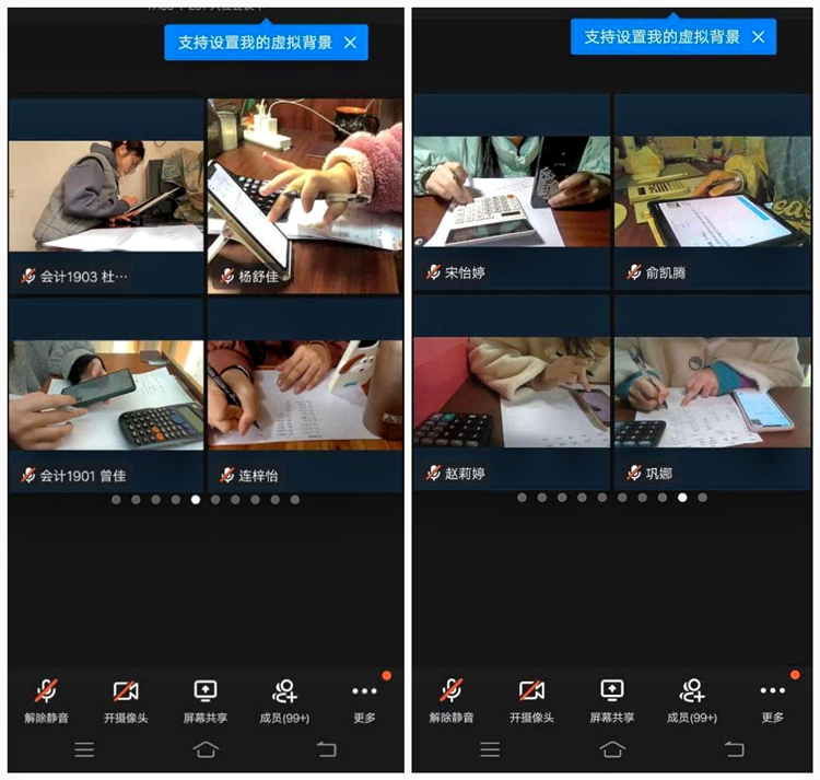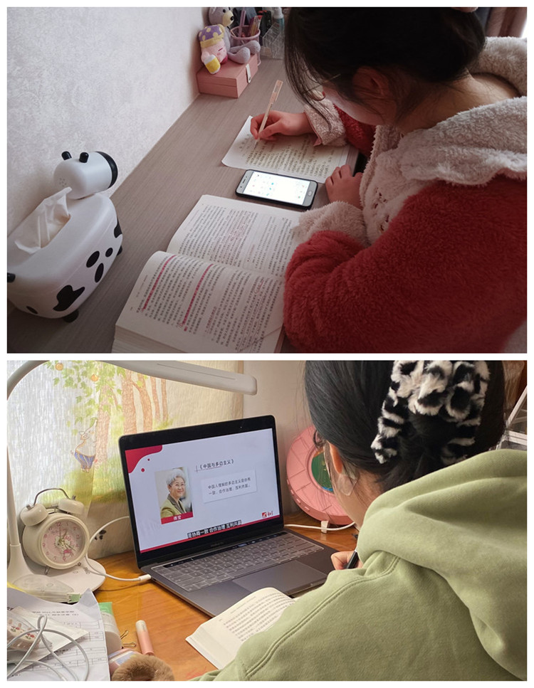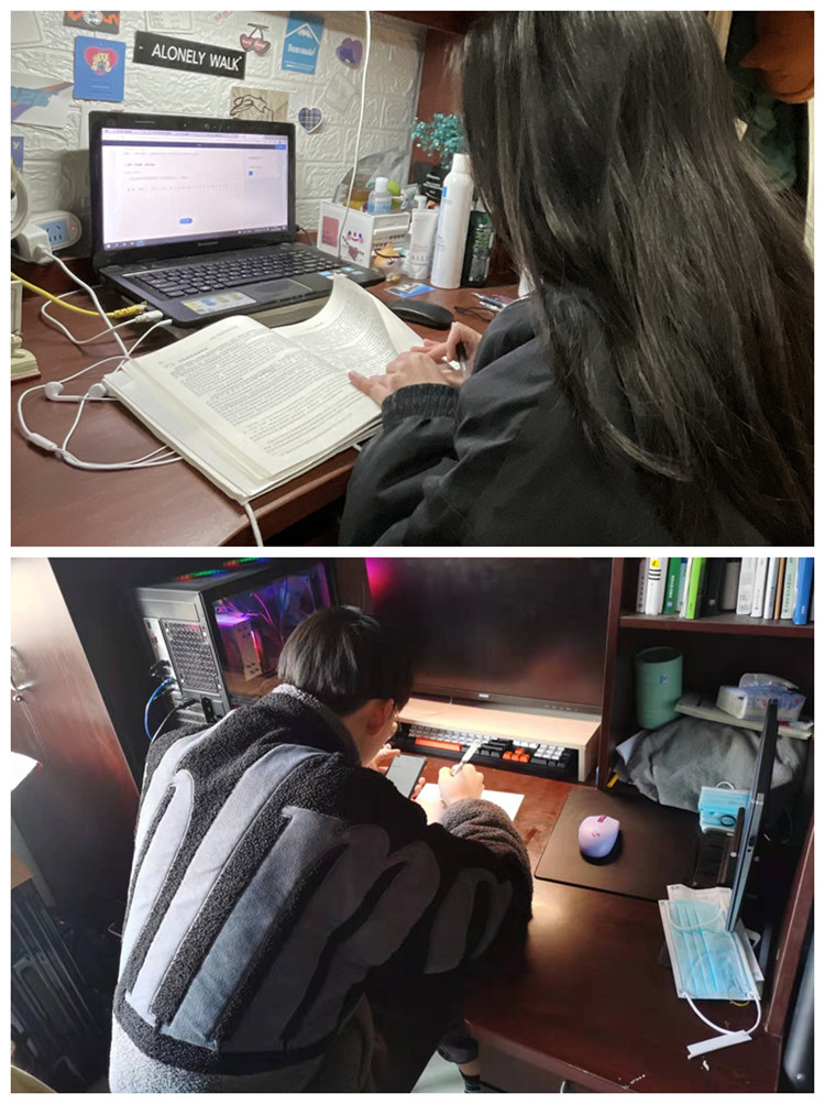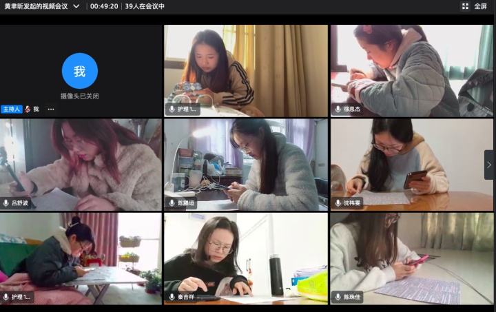 疫情下的学子们在不同的地点各自坚守“考场”,认真备考复习,努力为本次特殊的期末考试周画上圆满的句号。园林2001金晨阳因疫情原因没能回家,在寝室里通过钉钉直播完成了第一场考试,从答题到交卷,整个过程都很顺利,他说,对接下来安心地完成每一门课的考试更有信心了;会计2102陈周立在家完成了第一门课线上期末考试,内心充满了感激:“很感谢学院安排了这次特别的期末考,体验很新奇,安排也很人性化,在家的我们更要努力学习,取得令自己满意的成绩。”