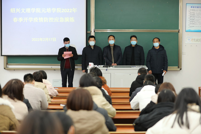 为切实做好学院新冠肺炎疫情防控和开学返校工作,全面提高突发疫情应急处置能力,根据省、市和属地防控办相关要求,2月17日下午,学院在6号教学楼举行春季学期开学疫情防控应急演练。学院党委副书记石旭明,副院长周思红,绍兴市疾控中心副主任方益荣,东浦街道人武部部长凌铁钢出席演练活动,学院相关职能部门、各二级分院党总支(副)书记、教学副院长、学工办主任、全体辅导员、学生代表等参加演练活动,演练活动由学院党委委员、党委、院长办公室主任王学炎主持。
