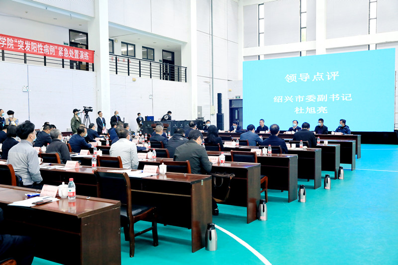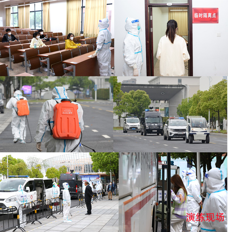 为切实做好在绍高校新冠肺炎疫情防控工作,加强师生疫情防控工作指导,全面提高突发疫情的应急处置能力,根据省、市教育主管部门及属地疫情防控要求,4月15日上午,在绍高校疫情防控应急演练在太阳举行。绍兴市委副书记、政法委书记杜旭亮,市委常委、副市长王涛,市级有关部门负责人,属地党委政府领导及有关部门负责人,校党委书记汪俊昌、校长王建力、党委副书记张宏、副校长黄坚及相关职能部门负责人,在绍高校分管负责人,院党委书记梁瑜、院长沈红卫等参加现场观摩。演练由沈红卫主持。