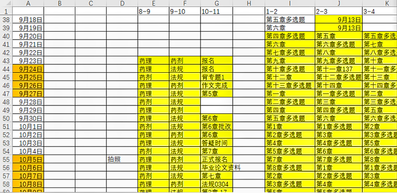 每天6点起床,640分吃完早餐开始学习,晚上10点结束学习回寝室”从2020年11月开始到2021年12月考试结束,李霁宸奔向“中国药科大学”的“研途”持续了一年时间。每天13小时的学习、堆砌如山的真题、笔筒里几十根空笔芯、色彩斑斓的笔记本、细致到章节和题型的学习计划表……“我也有被情绪‘攻击’的时刻,感到压抑是难免的。”李霁宸坦言有过“打退堂鼓”的时候,但不到一天又重新振作:“我允许自己小幅度‘摇摆’,但是绝对不超过一天,因为超过一天学习计划会被打乱,之后留下的任务更繁重。”