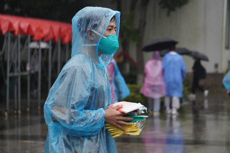 “人够吗,我可以先上!”“我护理学的,我来吧!”核酸检测通知下发后,仅用2小时,百余名志愿者、党员教师迅速集结、随时待命。上午8点左右,天空突然下起大雨,现场工作人员拿出提前准备好的雨衣,马不停蹄地为大家分发,师生纷纷点赞学院考虑周到。所有工作人员坚守岗位,大家耐心沟通、认真采样,一声声“谢谢”“辛苦了”,就是对他们最好的褒奖。