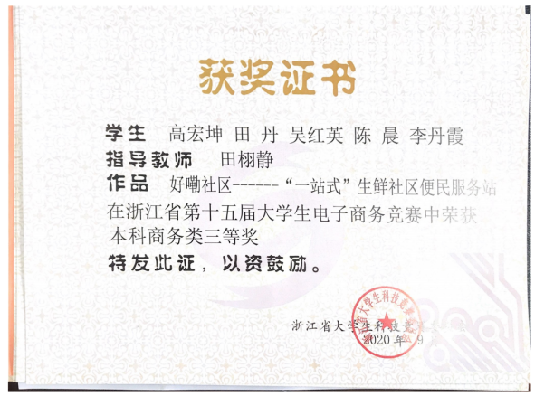 电子商务专业学生积极参加各级各类学科竞赛,包括统计调查方案设计大赛、经济管理案例分析大赛、电子商务大赛、“互联网+”创新创业大赛等,并获得国家级奖项多项,省市级奖项百余项。